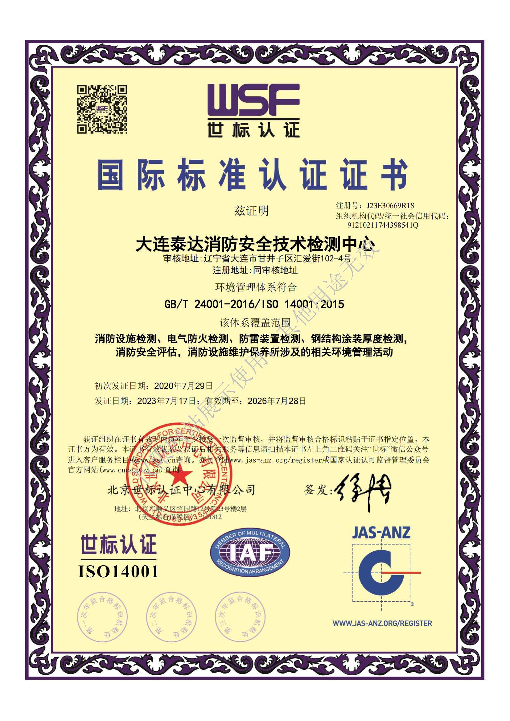 · 是經(jīng)“社會消防技術(shù)服務(wù)信息系統(tǒng)”備案并公示的消防技術(shù)服務(wù)機(jī)構(gòu),已取得中國氣象局頒發(fā)的雷電防護(hù)裝置檢測資質(zhì)證書、遼寧省質(zhì)量技術(shù)監(jiān)督局審核批準(zhǔn)的檢驗檢測機(jī)構(gòu)資質(zhì)認(rèn)定證書(CMA)及包括消防檢測、電氣檢測、雷電防護(hù)裝置檢測、防火涂層厚度檢測等在內(nèi)的200余項檢驗檢測能力,取得大連市應(yīng)急管理局頒發(fā)的安全生產(chǎn)標(biāo)準(zhǔn)化證書,獲得質(zhì)量管理體系、環(huán)境管理體系、職業(yè)健康安全管理體系認(rèn)證證書,是經(jīng)備案的高新技術(shù)企業(yè),可獨立出具具有證明作用的檢測報告。